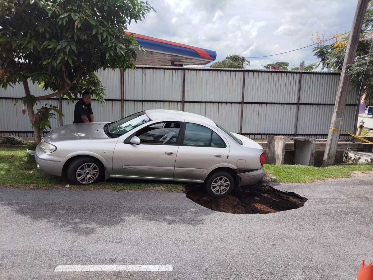 安邦再也市议员李文彬今午在面子书发文透露,近日有居民投诉,指当地一段路面突然出现大坑洞,致使一辆轿车途经时不幸掉入,导致车身受损严重。