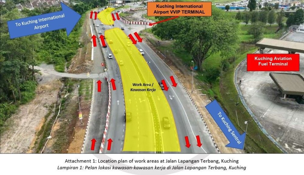 古晋国际机场 VVIP 航站附近的 Jalan Lapangan Terbang 部分路段将进行临时改道,为期 7个月,以配合高架桥桥柱施工工程。