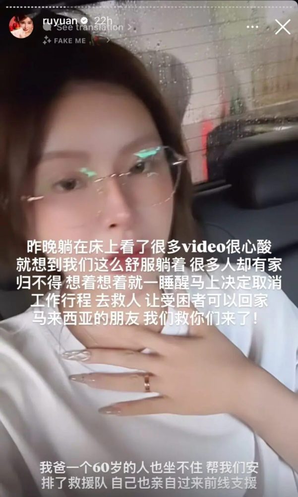 26日,大马微整师Ruyuan加入救灾行动,提供更多资金、人力、车辆与物资支持。看到灾区不断有人求助,她甚至不顾老公反对,亲自带队冲往泰国参与救援。