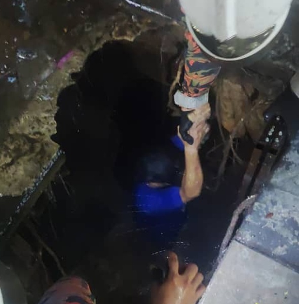 阿拉白沙罗今傍晚发生地陷意外,一名50岁马来男子不慎坠入塌陷坑洞,导致腰部受伤,所幸消防员及时赶到将其救起,避免更严重后果。