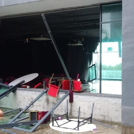 根据“波德申海洋城”度假村面子书发布的资讯,风暴来袭时威力惊人,不仅吹倒大批树木,甚至震碎住宿区玻璃结构,室内家具亦被强风卷得凌乱不堪,场面宛如遭龙卷风扫过。