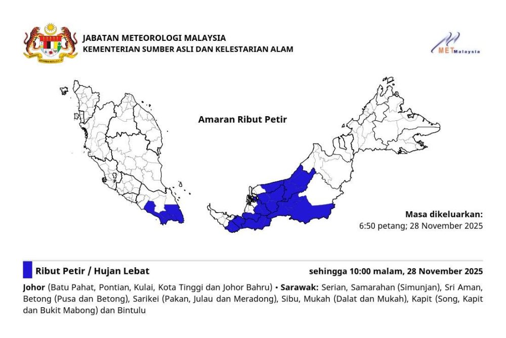 砂拉越:Serian、Samarahan(Simunjan)、Sri Aman、Betong(Pusa、Betong)、Sarikei(Pakan、Julau、Meradong)、Sibu、Mukah(Dalat、Mukah)、Kapit(Song、Kapit、Bukit Mabong)及Bintulu