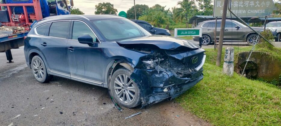 当时,轿车从五哩方向驶向实比河华小,而休旅车则由市区往五哩行驶。疑因轿车转弯疏忽判断,导致休旅车闪避不及,两车当场相撞,车身受损明显。