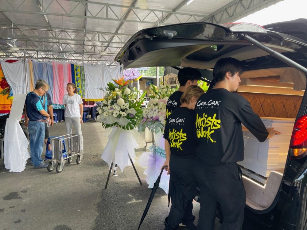 有“马来西亚壁画教父”之称、槟城肯肯公共艺术(Can Can Public Art)创办人陈楚淮,今早举殡。其妻子与两名儿子特地身穿他生前设计的工作服,送别这位一家之主;亲友们悲恸难抑,哭红双眼,现场气氛哀伤。