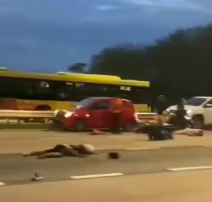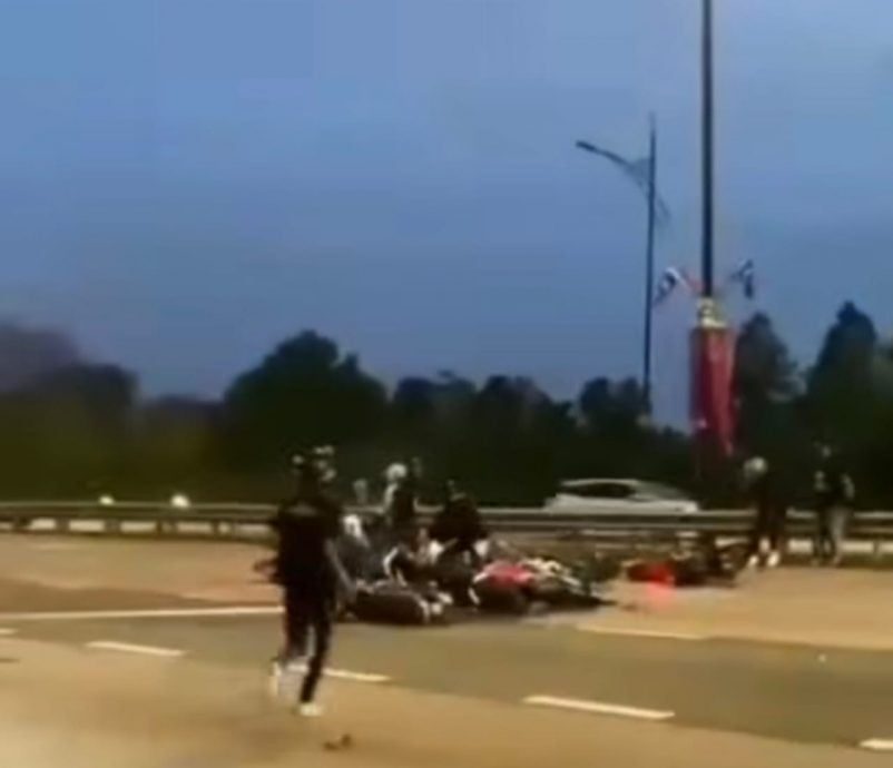 昨傍晚7点左右,一批摩托飙车党在依斯迈苏丹路集体疾驰,超过二十辆摩托高速穿梭于三条车道之间,速度之快令路过司机胆战心惊。未料行至靠近 Horizon Hills 路段时,一辆摩托疑似失控摔倒,引发后方多辆摩托来不及闪避,接连撞上翻覆,场面宛如连环骨牌。目击者直呼“my Gosh”,惊魂未定。