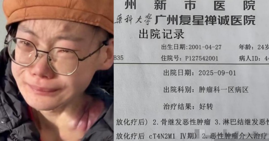 中国河南焦作一名年仅24岁的女大学生,因为持续咳嗽却找不出原因,最终被确诊为恶性肺癌。经过两年治疗后病情再度复发,癌细胞已扩散至全身与头部,身体多处出现疼痛肿块,让她常痛到跪在床上哭泣,身心备受折磨。