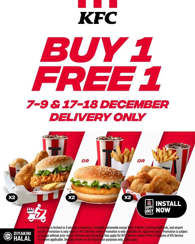 肯德基(KFC)的会员们注意了!KFC 将在12月份推出两波限时大优惠——【Kepci Member’s Day】,多款炸鸡汉堡套餐可享“Buy 1 Free 1”(买一送一)!