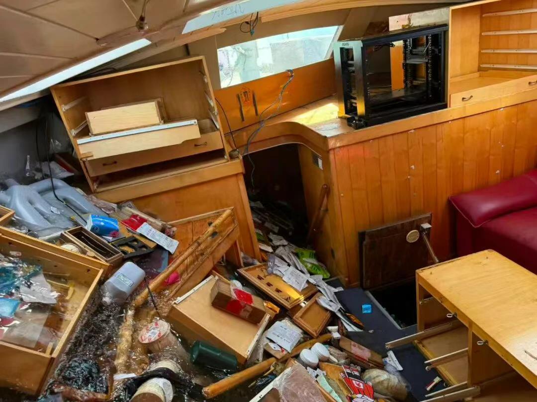 • 船只关键系统全部遭拆毁与掠夺,包括发动机、发电机、缆索帆具、救生艇、舷外机等核心设备;