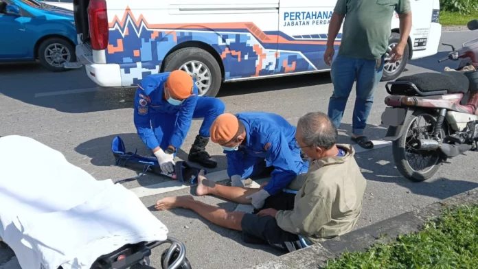 (6日)早上9时许,诗巫南兰律的阿曼路交通圈处发生一起摩托车与私家车碰撞事故,导致一名年迈的男骑士受伤。