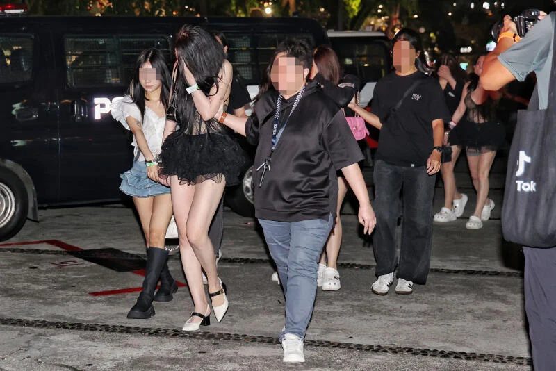 在媒体面前,部分陪酒女试图躲避镜头,拿枕头遮掩面部,或在警员陪同下换衣。最终,她们被戴上手铐,并于凌晨12时左右被带上警车,送往警局调查。