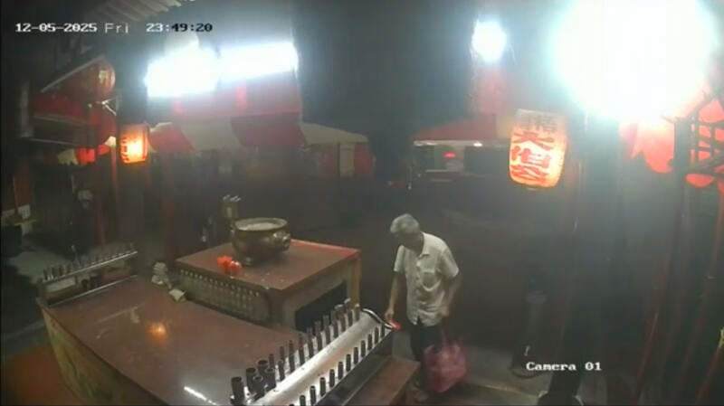 此外,庙方透露,闭路电视记录显示,涉案男子出现在12月5日晚上11时48分至6日凌晨零时15分期间,逗留约20分钟。画面显示,该名年长男子穿着白色短袖衬衫和黑色短裤,头发花白。他曾在虎爷坛边徘徊,并坐在坛边的矮凳上,闭路电视虽然未能清晰捕捉到他如何接触虎爷神像,但画面显示他曾弯下腰,并拿着粉红色袋子离开时还按了一下坛边。