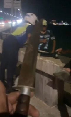 槟城大桥今日晚间惊传骇人听闻的跳海事件!一名相信是缅甸籍的男子站在大桥边沿,在众目睽睽之下,疑似用刀子刺伤自己的胸口后,纵身跃下大桥,生死未卜。
