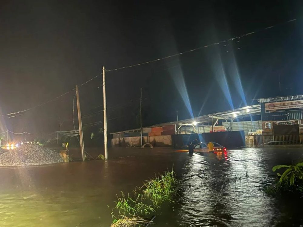 受连夜骤雨冲击,苏必士县于今日凌晨爆发严重闪电水灾!尼亚石山、石山花园住宅区、实务的镇市区等多区低洼地带水位在短时间内急速暴涨,许多居民被迫在深夜紧急驾车撤离至高处避灾。