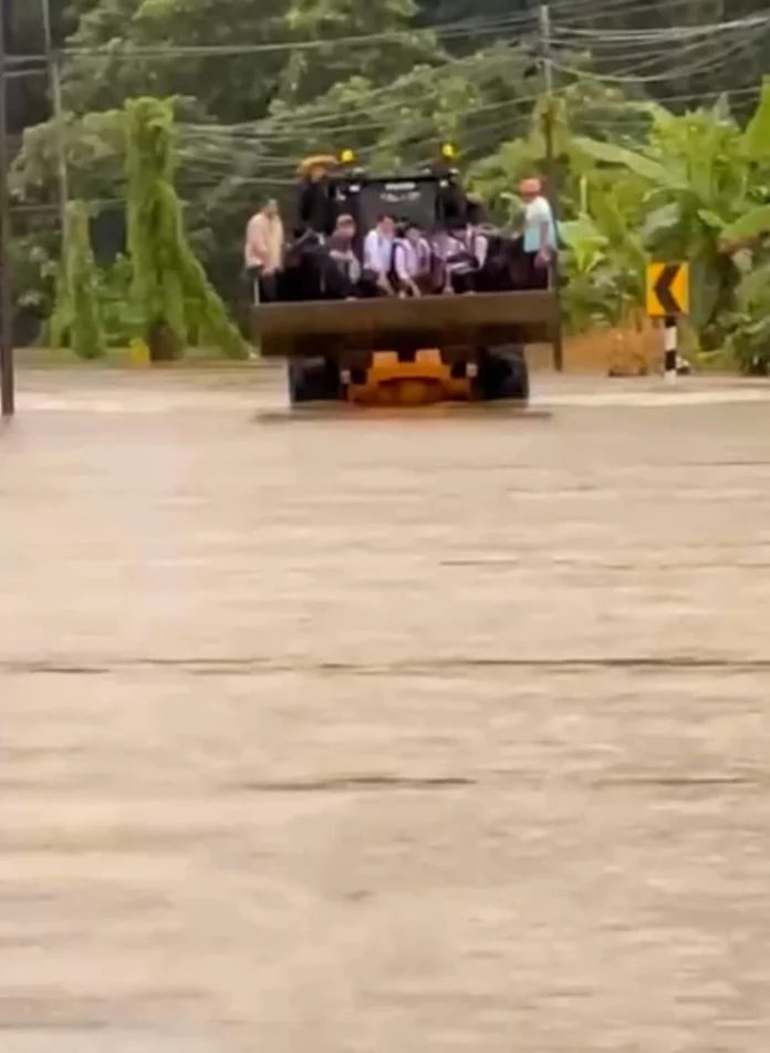 持续恶化的闪电水灾导致苏必士县多区交通瘫痪。然而,在石山地区,一位大卡车司机今晨的暖心义举,为被洪水围困的SPM考生点亮了希望。