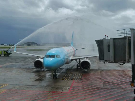砂交通部常务秘书拿督黄希胜在欢迎仪式上指出,首航班机于下午12时50分抵达古晋,并透露此航线以定期包机形式营运,固定每逢星期二执飞。