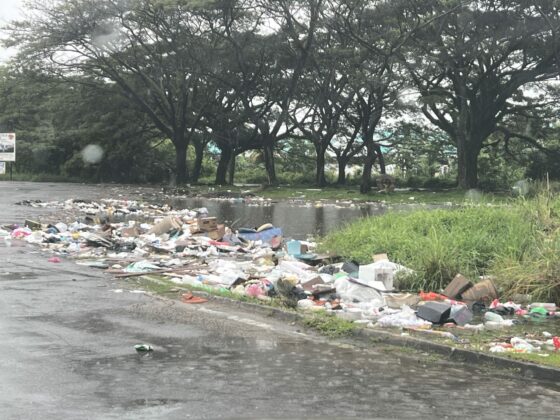 一场大雨过后,民生环境亮起红灯!史纳汀路边被大量垃圾覆盖,积水区域漂满了塑料瓶、纸箱、保丽龙及各类家庭垃圾,现场一片狼藉,恶臭随之飘散。