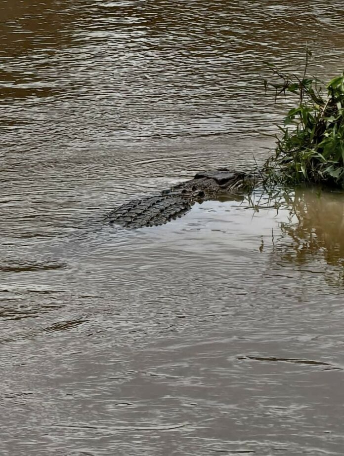 近来因潮水连续偏高,鳄鱼不仅清晨和傍晚出现,白天也能在水面随意巡游。其中一只长达约六米的“老鳄”更被居民称为“河霸”。