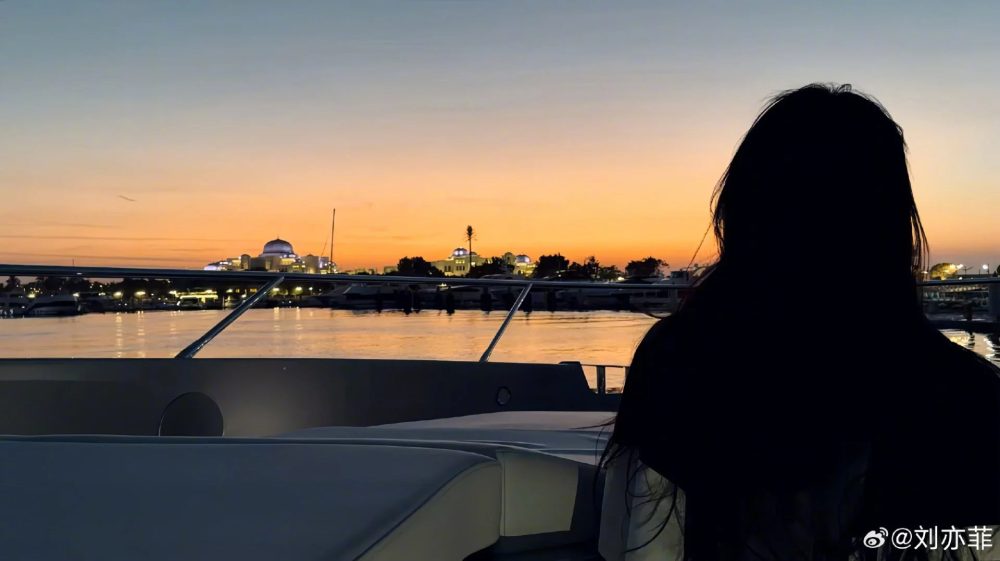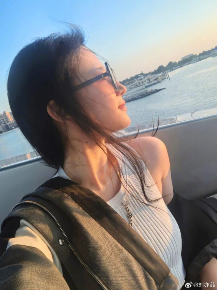 紧接着,刘亦菲又换了另一种气质。她在社交平台分享了一组游艇日落照,足足12张。照片中,她穿着简单的白色背心或灰色T恤,头发被海风吹得微乱,几乎素颜的脸上还能看到细微雀斑。她或倚着栏杆,或随意坐着,背后是暖色夕阳和海面波光。没有刻意摆拍,也没有华丽背景,画面简单得像朋友度假时随手记录的美好瞬间。