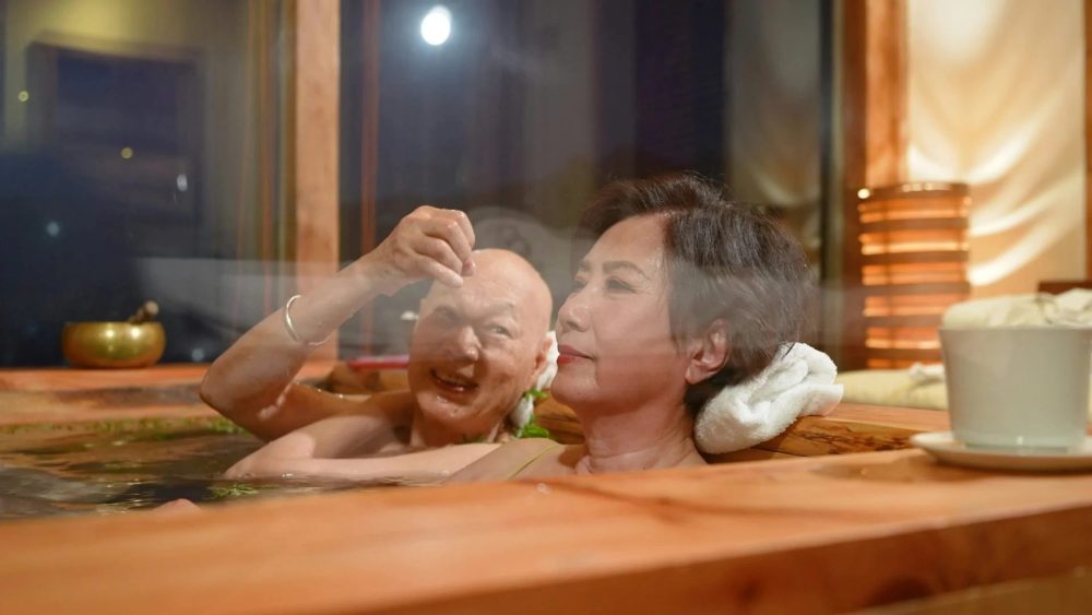 向来幽默的罗家英,在浸浴期间不改搞笑本色,高高翘起双腿自豪表示:「人人都话我对脚又直又长又靓。」他更笑爆平日会在家替太太做Facial,为退休后的「第二人生」作准备。节目中,罗家英对汪明荃照顾周到,80岁的他在太太下直升机时还亲自搀扶,满眼宠溺,尽显深情。