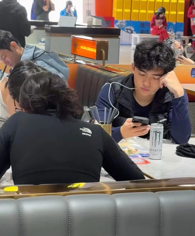 有网民透露,13日在深圳一处滑雪场巧遇18岁的Lucas。当时他与朋友同行,打扮十分低调休闲,身穿深蓝色长袖上衣,外搭黑色背心,戴着白色有线耳机,一边看手机一边休息,神情轻松自然。桌上还放着一罐能量饮料,整体状态看起来十分松弛。