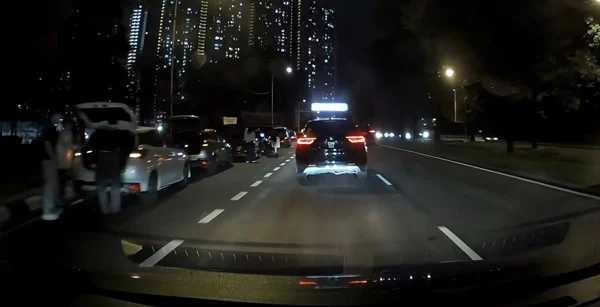 武吉加里尔一条主要干道昨晚突现又深又大的路洞,毫无预警之下,多辆轿车接连“踩雷”爆胎,被迫停靠路旁等待救援,现场一片混乱,甚至连前来协助的补胎师傅也不幸“中招”。