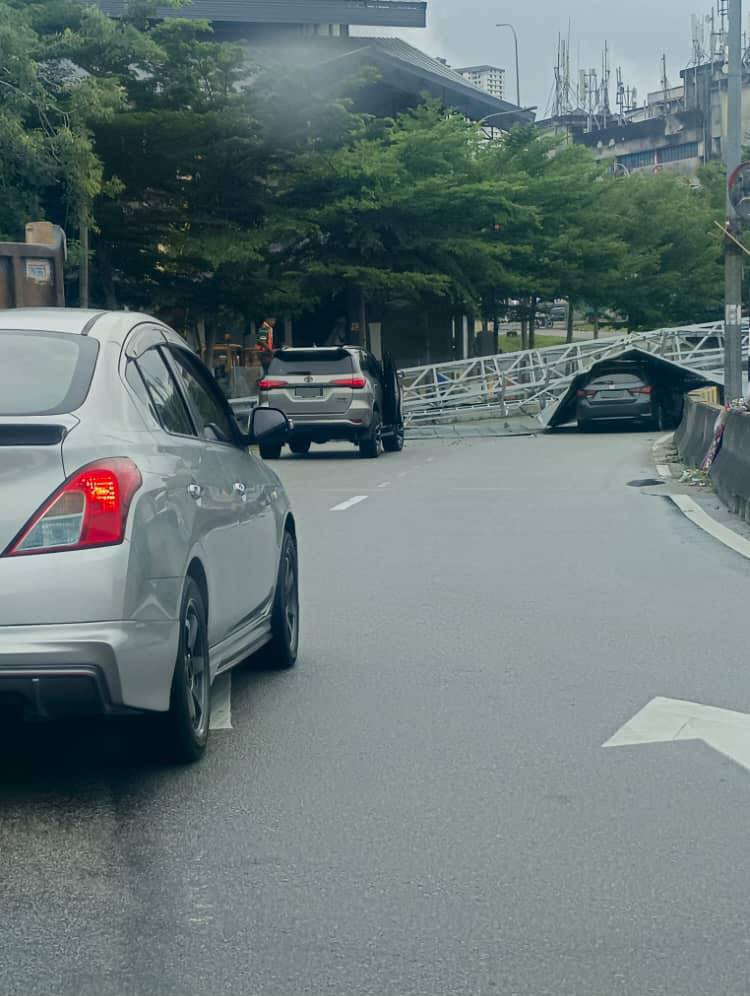 继第二中环公路(MRR2)发生钢架倒塌砸车事故后,杜顺大路段再度传来不幸消息:一座大型广告鹰架突然倒塌,砸中了正在行驶的轿车!