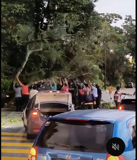 一名巫裔网友在社交平台Threads上分享了这一幕,并表示自己当天带着孩子外出,幸运的是他们一家人没有受伤。视频中可以看到,倒下的大树阻挡了车道,周围的民众纷纷参与到移树的工作中,毫不犹豫地伸出援手,不分种族、背景和年龄,大家一起合作,迅速将大树清理出路面。