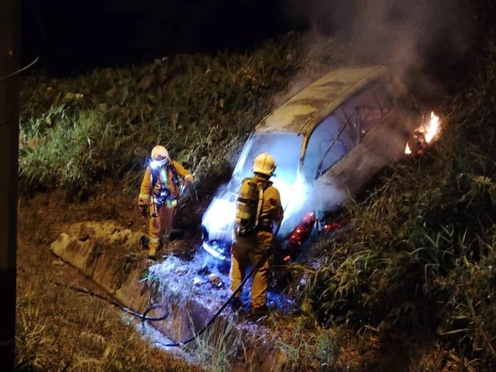 加拿逸消拯局于晚上8时06分接获投报后,立即派员赶赴现场展开救援,并迅速将火势扑灭。事故导致涉事私家车几乎被完全烧毁。