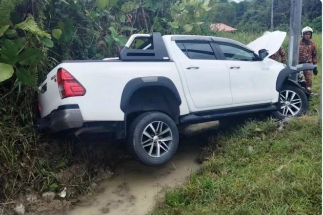 根据《诗华日报》报道消拯队员发现,一根电讯杆及相关电缆因车辆撞击而折断,存在安全隐患,随即展开清理与移除工作,确保道路及周边环境安全后才离开现场。