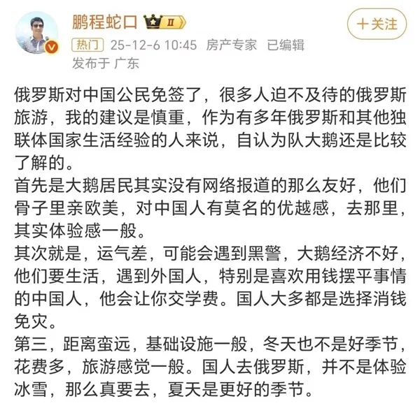更有网友吐槽道:“这旅游简直成了自我流放宁古塔”,“真不明白为什么推荐去一个正在发生战争的国家?”还有网友惊讶地表示:“你们居然真去俄罗斯了?”