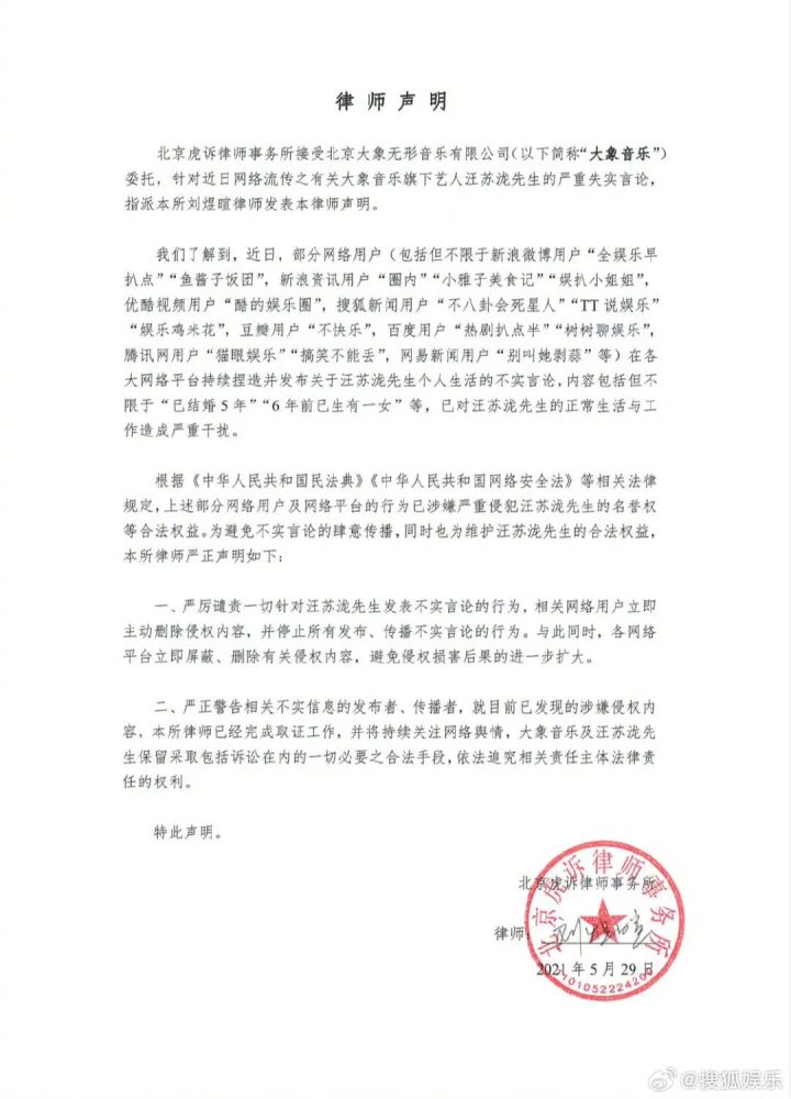 事实上,这并非汪苏泷首次被传隐婚生子。早在2021年,其工作室就曾针对“已婚多年”“早已有女儿”等说法公开辟谣,强调艺人未婚、也不存在孩子,并曾发布正式声明澄清。