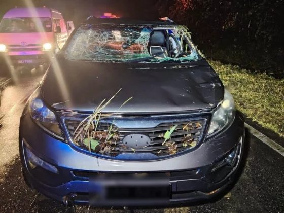 警方调查显示,事故涉及一辆注册于汶莱的车辆,由63岁男子驾驶,车上还搭载其妻子及一名友人。事发时,车辆正由莫拉伯驶往老越市区,疑因失控冲出路面左侧,坠入因雨水积满的排水沟。