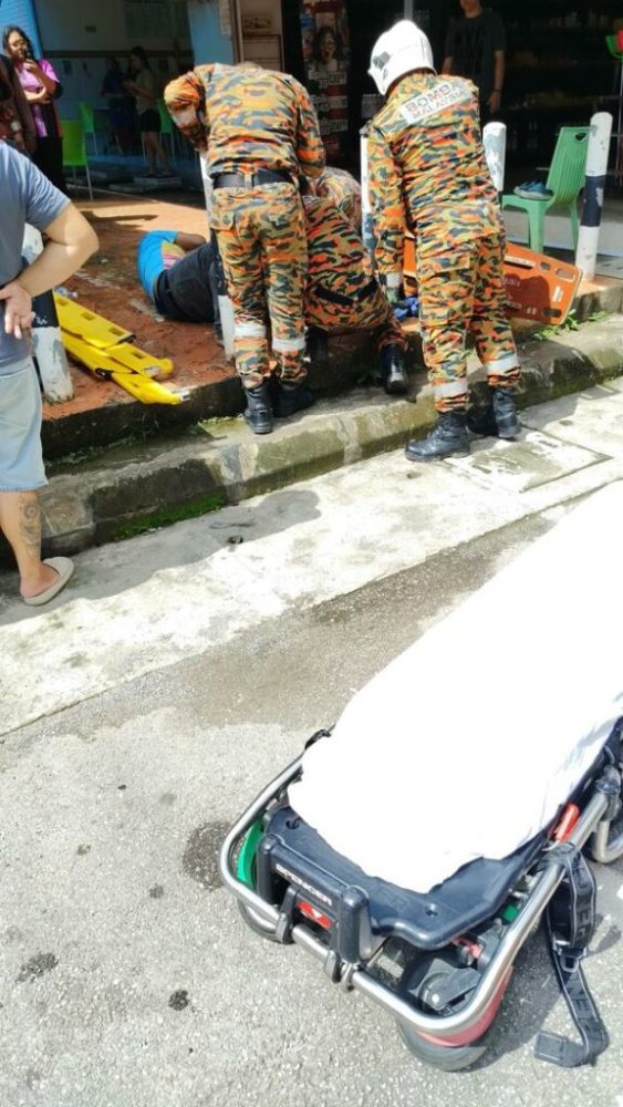 18日早约10时50分,一名男子在大富村商业店进行招牌安装作业时,不慎从约10多尺高处跌下受伤。