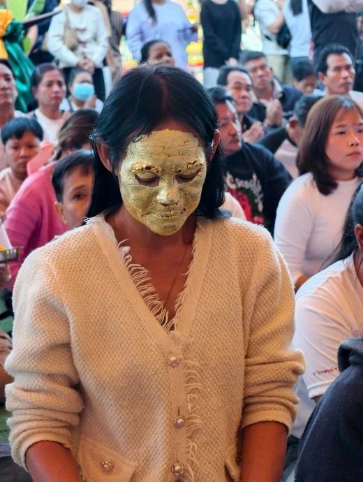 泰国大城府一间佛寺近期因一张信徒脸部贴满金箔纸的照片而在社交媒体上迅速走红。庙方表示,这一独特的祈财仪式已帮助信徒们中得多个大奖,并吸引了大量关注。