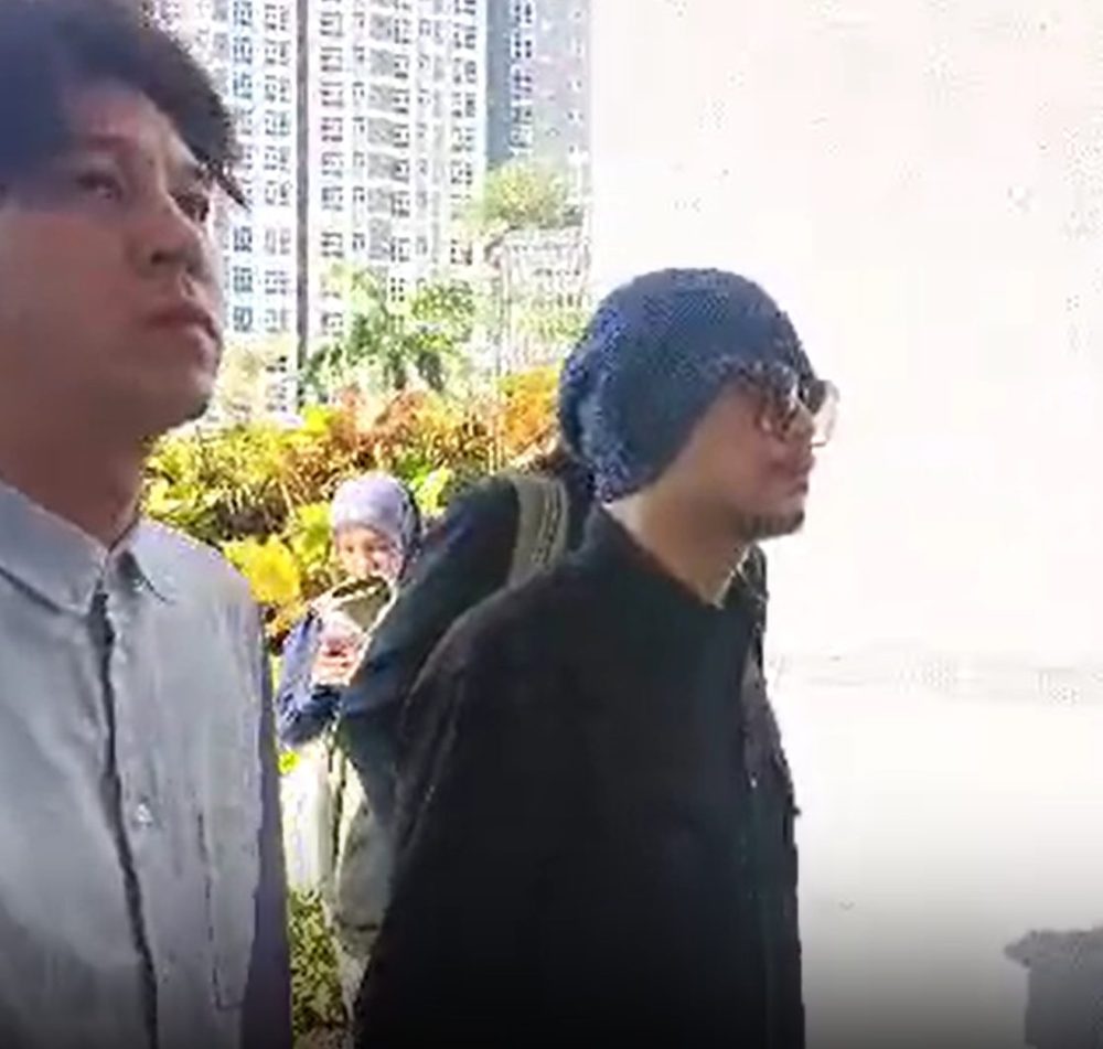 现年42岁的黄明志身穿黑色长袖上衣,戴着蓝色帽子与墨镜,在代表律师郑清丰陪同下抵达法庭,并按程序排队进入庭内。