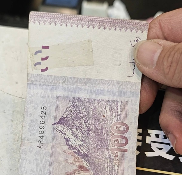 一名食客日前在Cheras Balakong的一家餐厅用餐后,因使用一张有裂痕并贴过胶纸的100令吉钞票结账,一度遭餐厅拒收,引发小插曲。