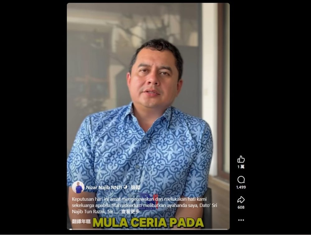 在另一方面,纳吉的次子拿督纳兹夫丁对那些因父亲的居家服刑申请遭驳回而感到高兴的人进行抨击,称这些人对国家和人民毫无建设性贡献。