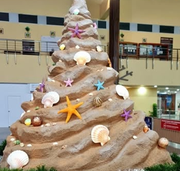 日前,有网民在“大马学术讯息”脸书群组上传照片,可见机场内摆放着一棵棕褐色、看似堆砌而成的圣诞树,树身点缀贝壳与海星,顶部还放着一颗星星,设计师意图融入海岛特色,打造别具一格的节日氛围。