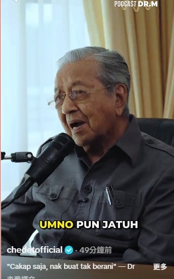 马哈迪在其TikTok账号“chedetofficial”发布的一段播客短视频中,接受《The Malaysian Reserve》主编三苏阿克马采访时表示,表面上看似巫统愤怒,但实际上,巫统仍是行动党的中坚支持者。