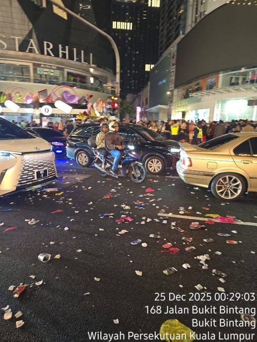 为迎接圣诞节,不少民众涌入吉隆坡市中心武吉免登一带狂欢倒数,现场气氛热闹非凡。然而庆祝活动结束后,街道却留下大量垃圾,其中以泡沫喷雾罐最为显眼,严重影响市容。