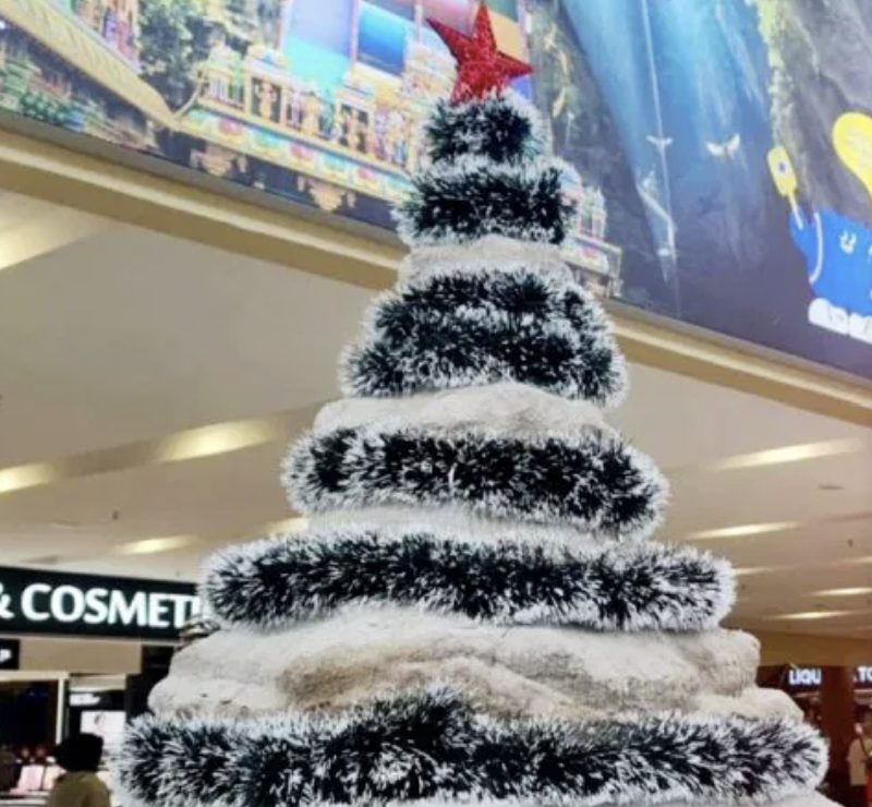 曾引起网民热烈讨论的浮罗交怡机场沙雕圣诞树,近日悄然“换装”。在外观遭到部分网民批评后,这座沙雕装置被加上多圈带有亮片的圣诞树藤,整体造型明显向传统圣诞树靠拢。