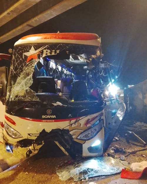 这起事故于昨晚约9时50分发生,警方接获公众通报,指在南北大道新山北区第11.5公里处,有一辆长途巴士发生严重车祸。
