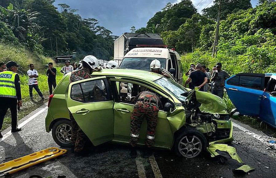 这起致命车祸于上周六(21日)发生在哥打马鲁都甘榜孟加里斯路一带。事发时,一辆国产贝扎(Bezza)与一辆国产阿西亚(Axia)在山坡路段迎面相撞,冲击力猛烈。