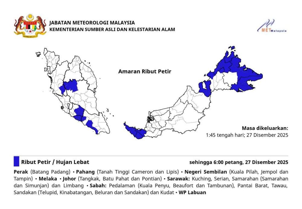 上述天气状况预计持续至2025年12月27日(星期六)下午6时