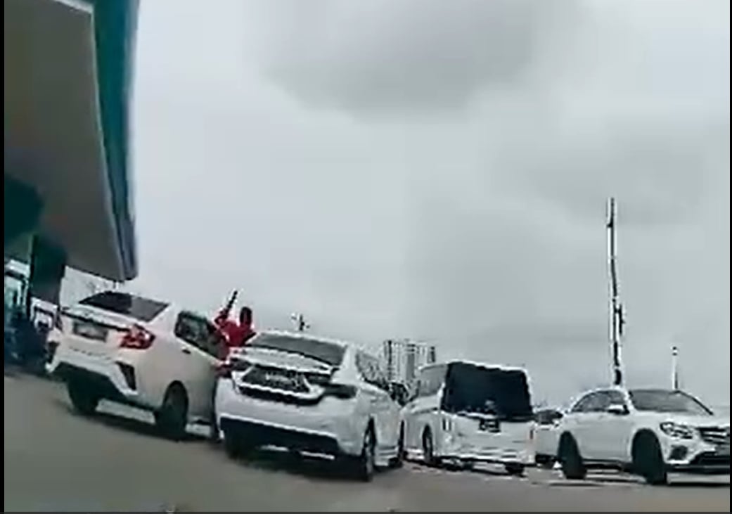 该事件发生在今日下午约2时21分,新山内环公路靠近一所马石油油站的位置。行车记录器画面显示,红衣男子突然从车厢取出棍状物后,朝停靠的轿车猛砸,造成惊人的场面。