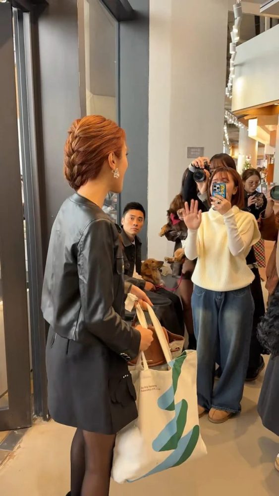 日前,陈凯琳赴澳门工作,身穿黑色皮夹克搭配短裙,梳着甜美又帅气的“Elsa辫”,气场十足又不失亲和力。她提着几袋物品,自行走入会场,全程笑容灿烂,与工作人员热情互动,完全没有架子。