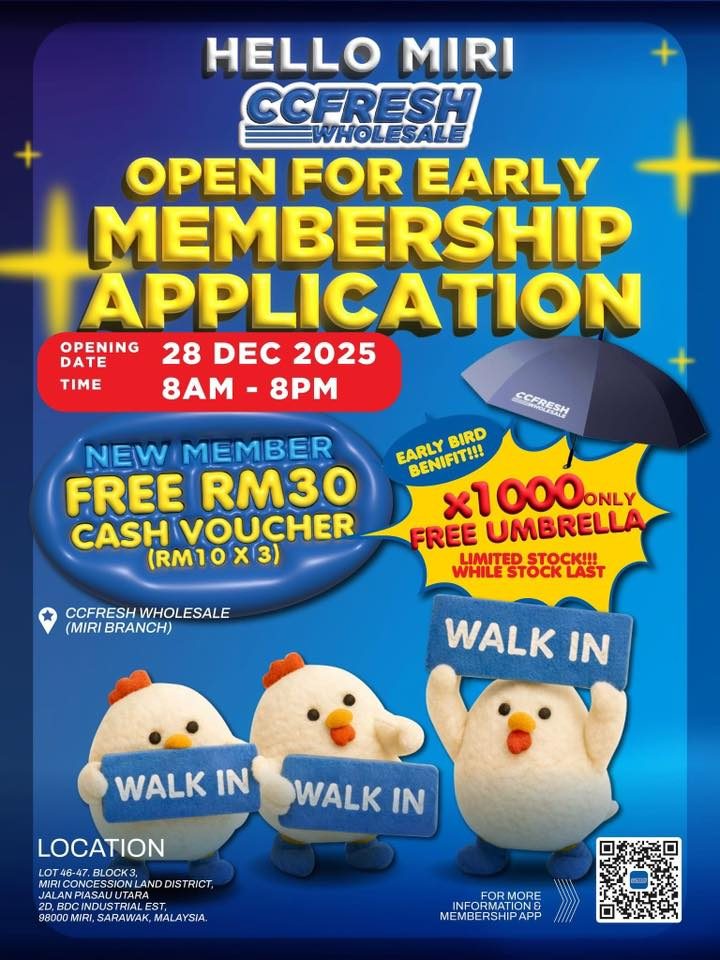 砂拉越知名连锁超市 CC Fresh Wholesale & Supermarket Sdn Bhd 即将在美里 Jalan Piasau 盛大开业,为本地市民带来 更便利、更实惠的一站式购物体验