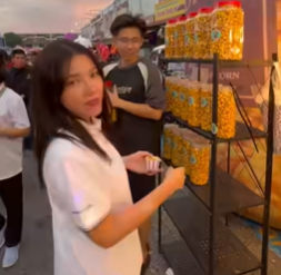 尽管说得结结巴巴,夜市摊贩们却被她诚恳又开心的模样逗得笑声连连,现场气氛轻松融洽。
