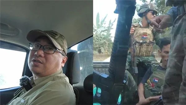 林秉宥指出,该区域距离缅甸军政府控制区仅约3至5公里,近期仍不时传出零星交火声。画面中可见,多名武装人员全程随行护送,身穿迷彩服、持枪戒备,时刻警戒四周动静,显示此行风险极高。