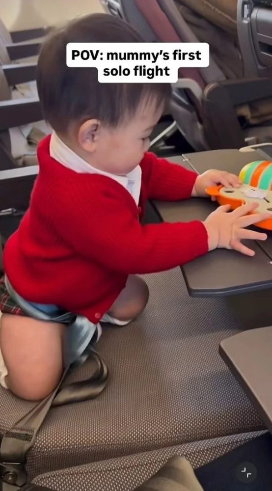 麦明诗透露,由于丈夫在圣诞期间需要工作,她不舍让父子分隔两地,决定挑战自我,独自带儿子飞行与丈夫团聚。影片中,小宝宝对机舱内的一切充满好奇,不时伸手拉动餐桌与杯架,又站起身张望窗外景色,看到乘客经过还会探头打量,活力十足。